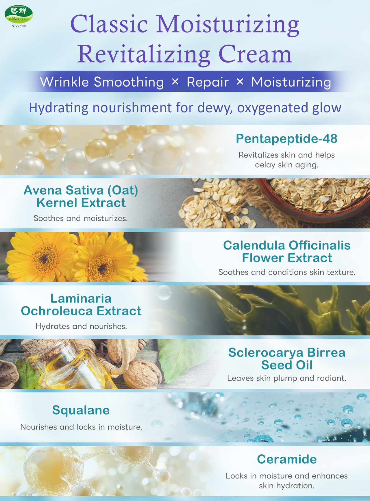 【Product Features】Formulated with Pentapeptide-48, Avena Sativa (Oat) Kernel Extract, Laminaria Ochroleuca Extract, Sclerocarya Birrea (Marula) Seed Oil, and Calendula Officinalis Flower Extract.