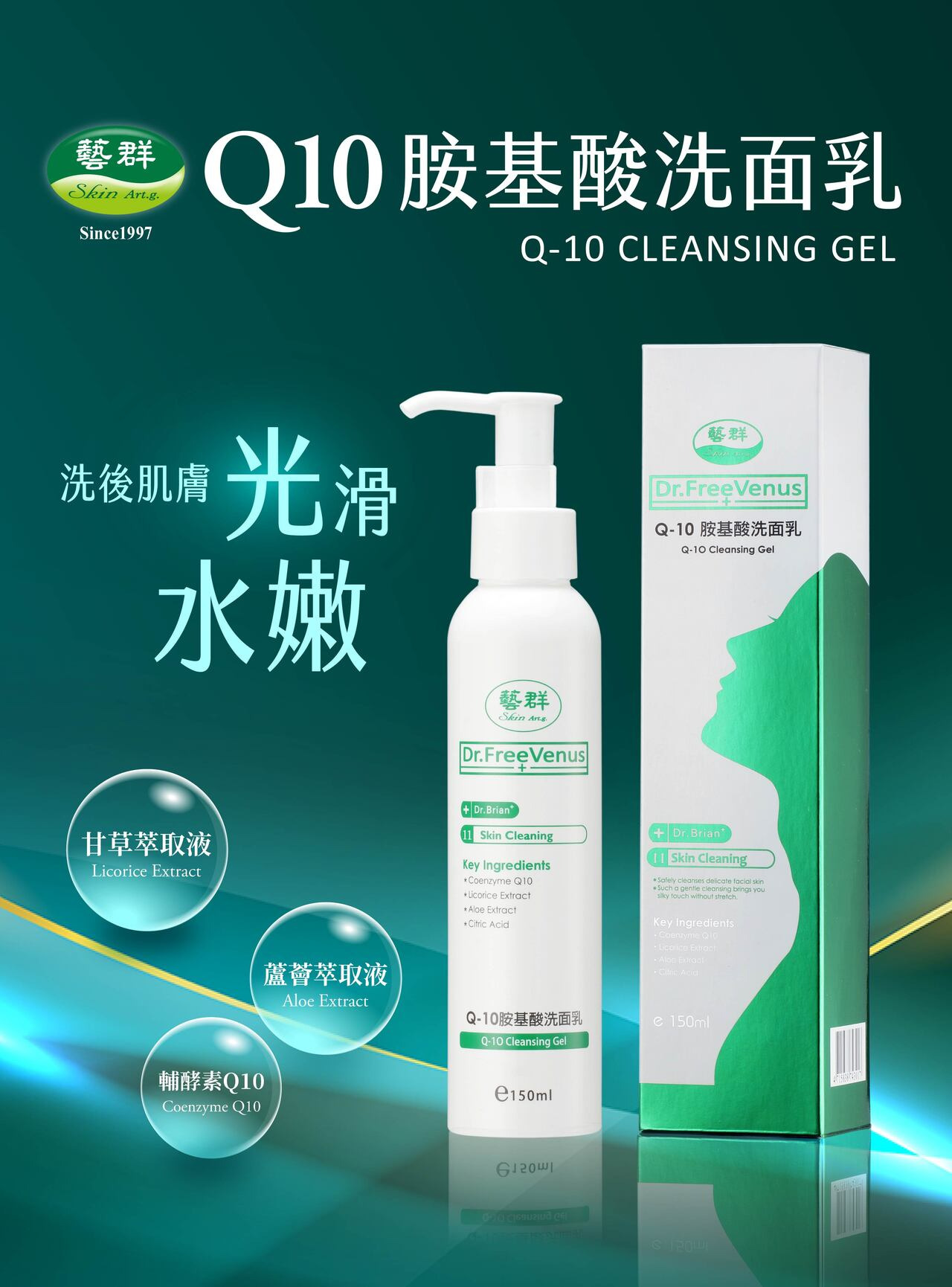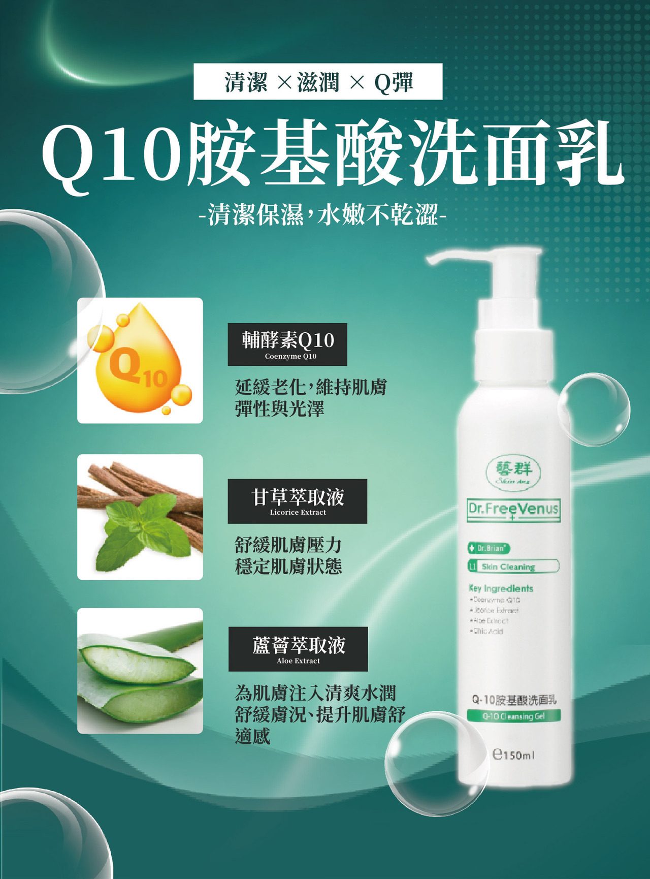 【產品特性】含Q10、檸檬酸(Citric Acid)、甘草萃取(Licorice Extract)、蘆薈萃取(Aloe Extract),清潔同時兼具保濕效果,洗後肌膚光滑、明亮不緊繃。