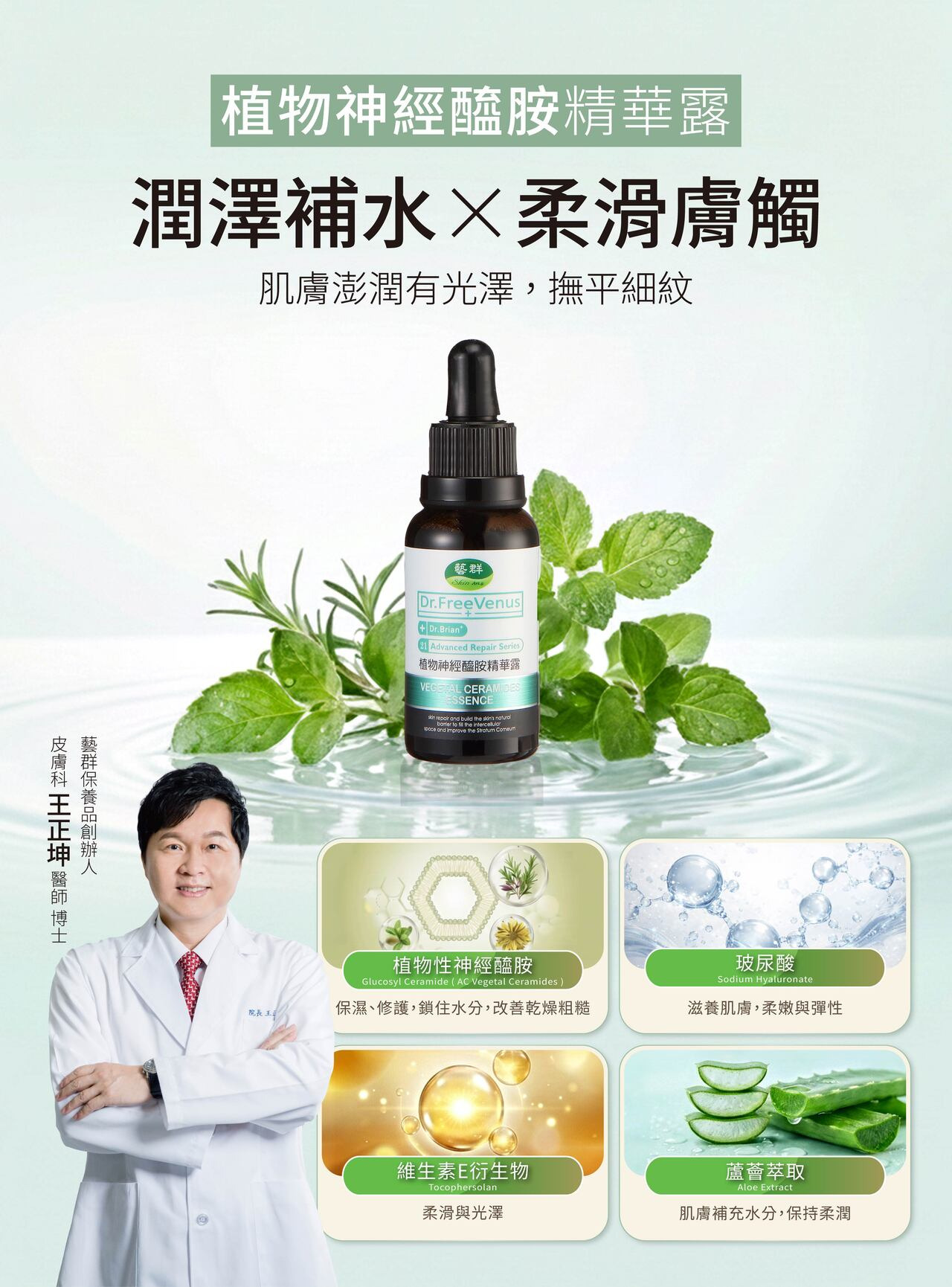 1.植物性神經醯胺Glucosyl Ceramide(AC Vegetal Ceramides): 保濕、修護,能鎖住水分,改善乾燥粗糙,提供肌膚長效保水力。