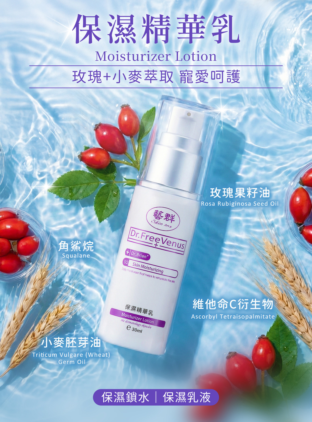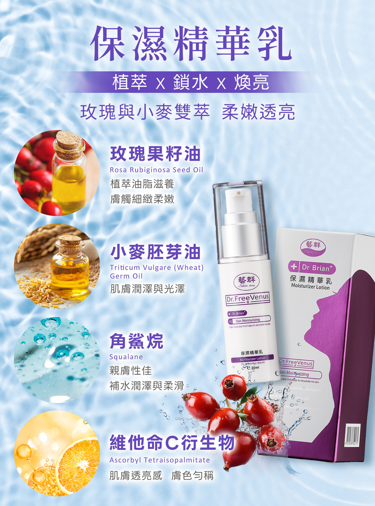 【產品特性】含玫瑰果籽油、小麥胚芽油、角鯊烷和維他命C衍生物,使肌膚留住水分,改善乾澀引起之肌膚細紋。